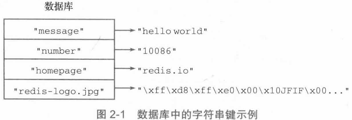 为了方便阅读,本书在示意图中将新出现的键统一放置在已有键的下方进行展示。在实际的 Redis 数据库中,键的存储是无序的,新添加的键可能出现在任意位置。因此在使用过程中,不应对键的存放位置作任何顺序假设,以免产生错误。