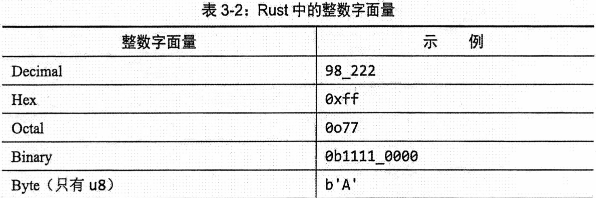 57u8)并使用下划线_作为分隔符以提高可读性(如1_000)。如果无法确定使用哪种类型,i32通常是良好的默认选择,因为它在多数情况下运算速度最快。isize和usize则主要用于集合的索引。当尝试为整数变量赋予一个超出其类型表示范围的值时,就会发生整数溢出。Rust 对此的处理方式取决于编译模式:在调试(debug)模式下,溢出会触发程序 panic(即因错误而终止);在发布(release)模式下,则会执行二进制补码环绕,即超出最大值的数值会“环绕”到该类型的最小值重新开始(例如,对于